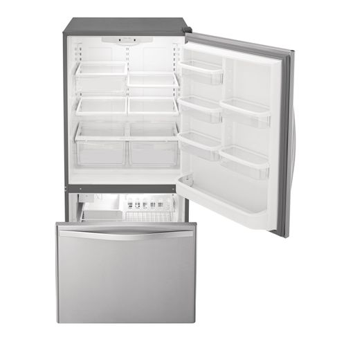 Bottom freezer refrigerator stainless steel.